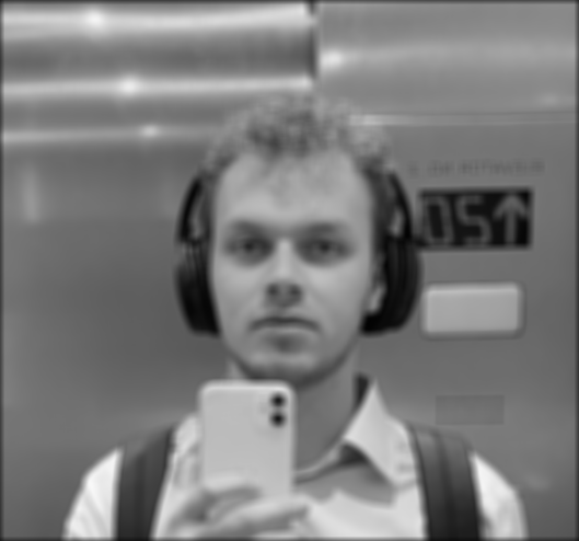 In the next step of this project, I worked on blending two images seamlessly by applying a smoothed mask to lower frequencies and an unsmoothed mask to the highest frequencies. The effect of this approach is that coarser features, whose changes are easily noticeable to the eye, must be gradually blended, while finer features should be more aggressively blended to avoid perceiving blur artifacts. To accomplish this, I first isolated $N$ distinct frequency ranges for each of the two images being blended. This can be achieved by repeatedly applying Gaussian blur starting from each original image to form a Gaussian stack, then subtracting each $(i+1)$-th layer from the $i$-th layer to form a Laplacian stack. The last element in the Laplacian stack is simply the residual Gaussian blur. With these frequency decompositions, we can apply increasingly smoothed masks as we move toward coarser features.
