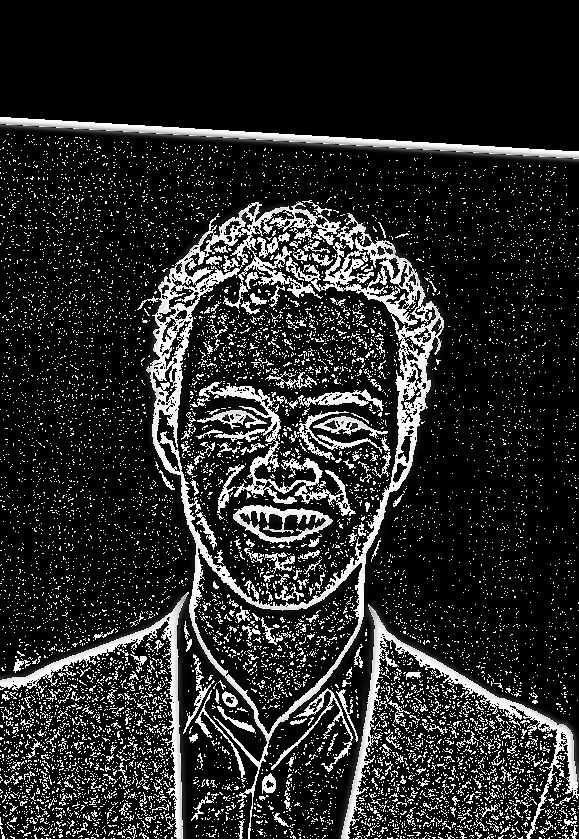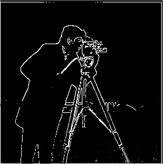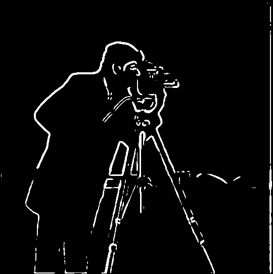 Next, I computed the gradient magnitude between the two convolutions, as seen in the first image below, and manually set a threshold to isolate edges from noise.