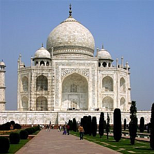 Left: High frequencies, Center: Original Taj Mahal Right: Sharpened Taj Mahal ($factor=1.2$).
