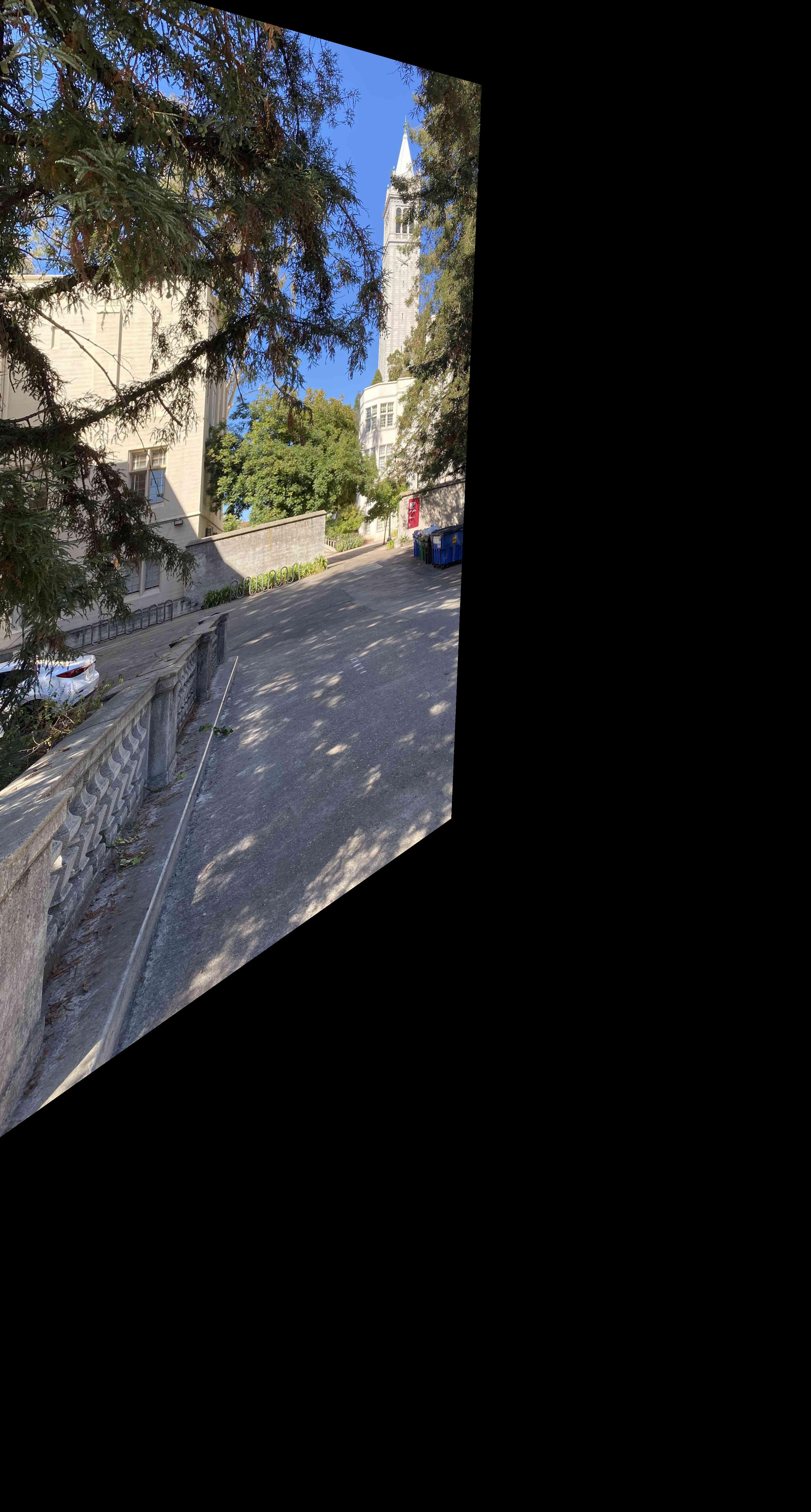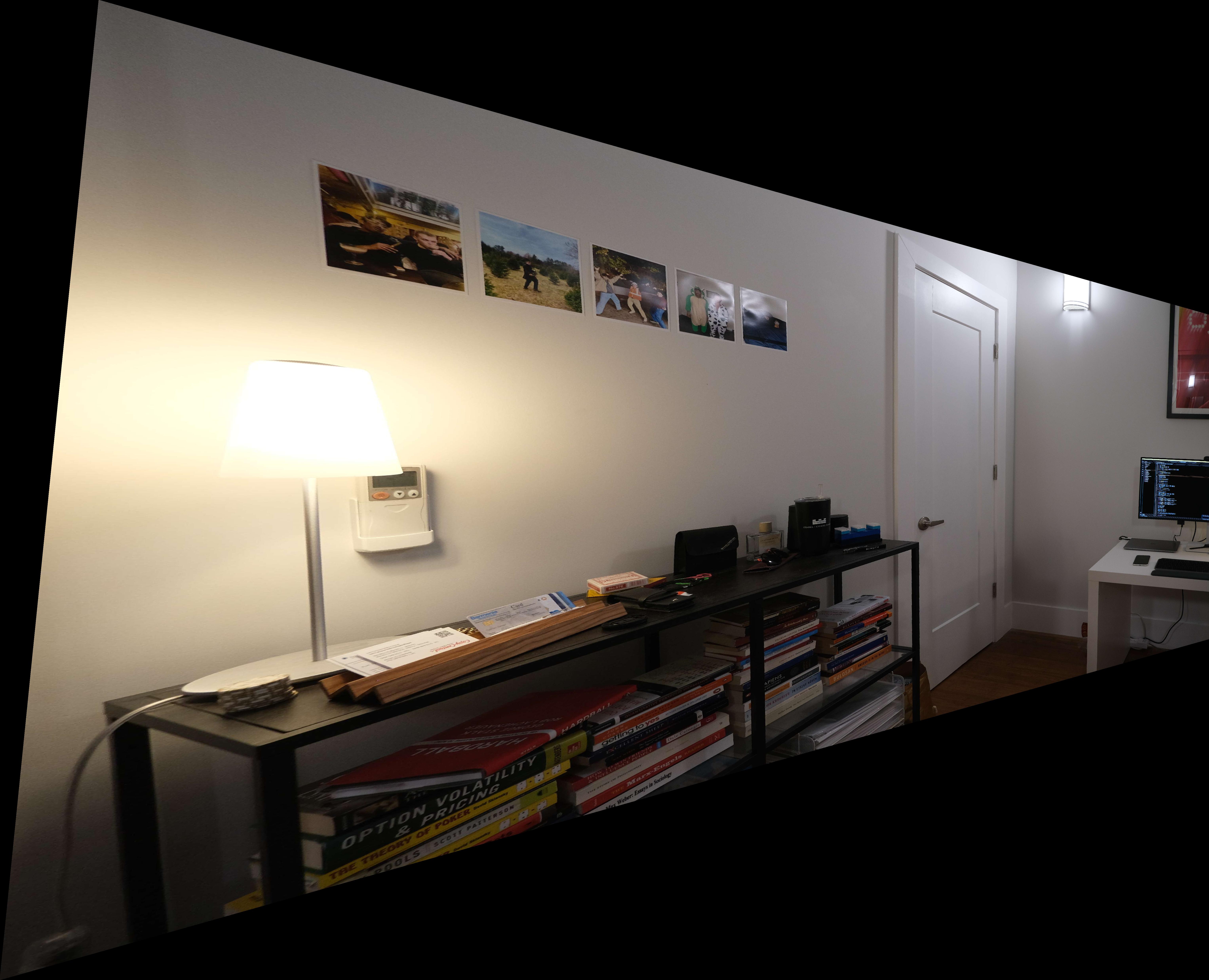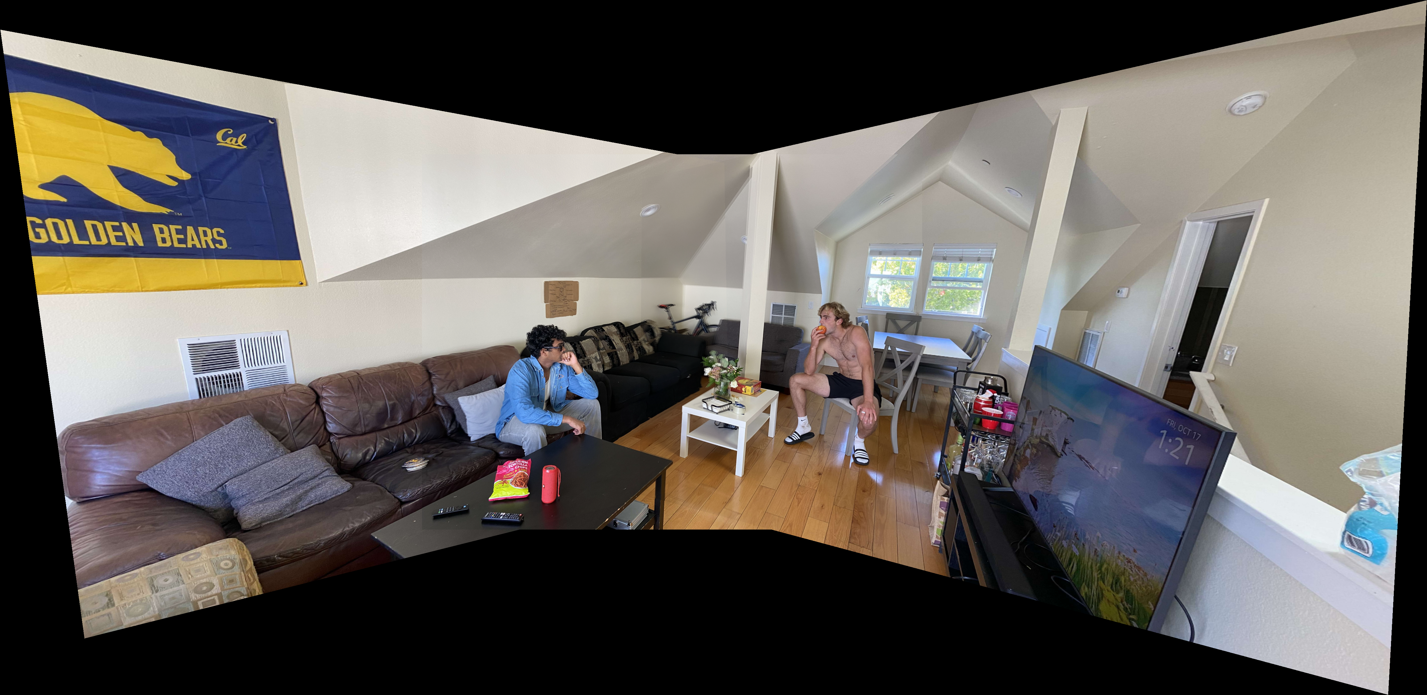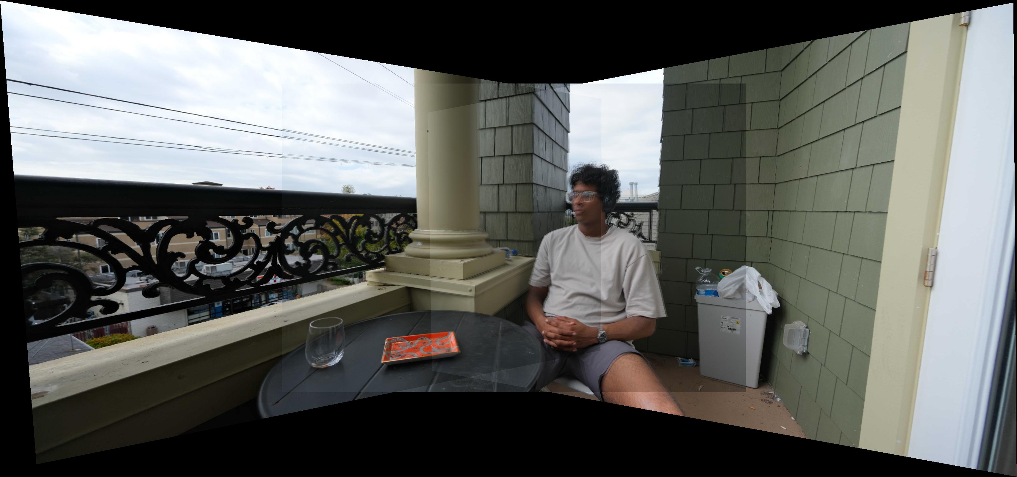 \[I_{out}(x, y) = \frac{\sum_{i} I_i(x, y) \cdot M_i(x, y)}{\sum_{i} M_i(x, y)}\]where $I_i(x, y)$ is the intensity of the $i$-th image at pixel $(x, y)$, and $M_i(x, y)$ is the weight for the $i$-th image at that pixel. This approach minimized edge artifacts decently. Below are my results!
