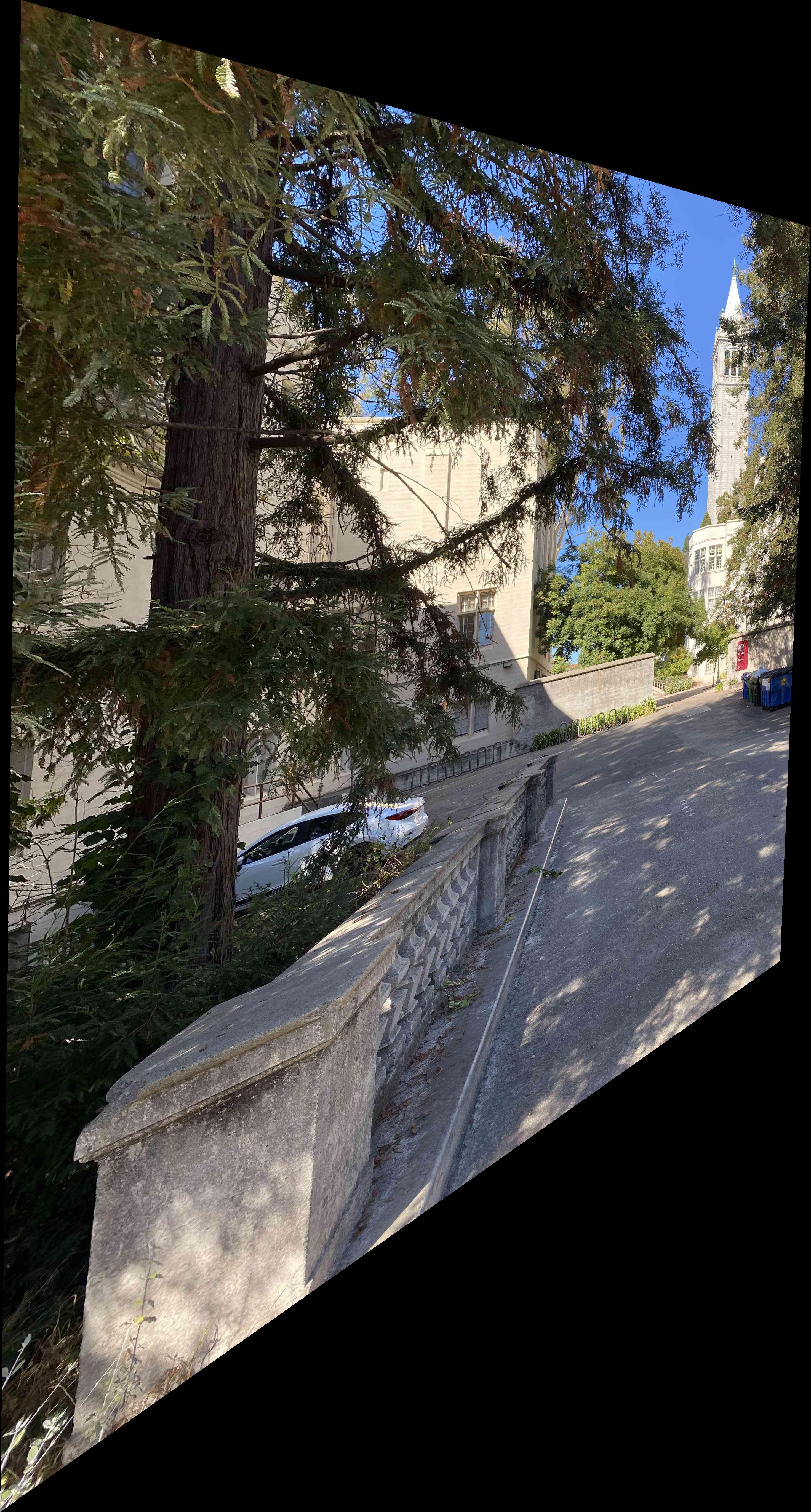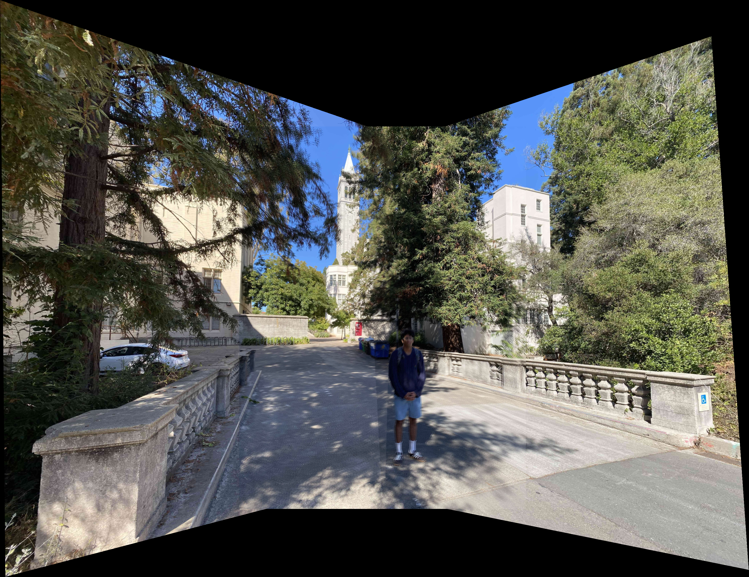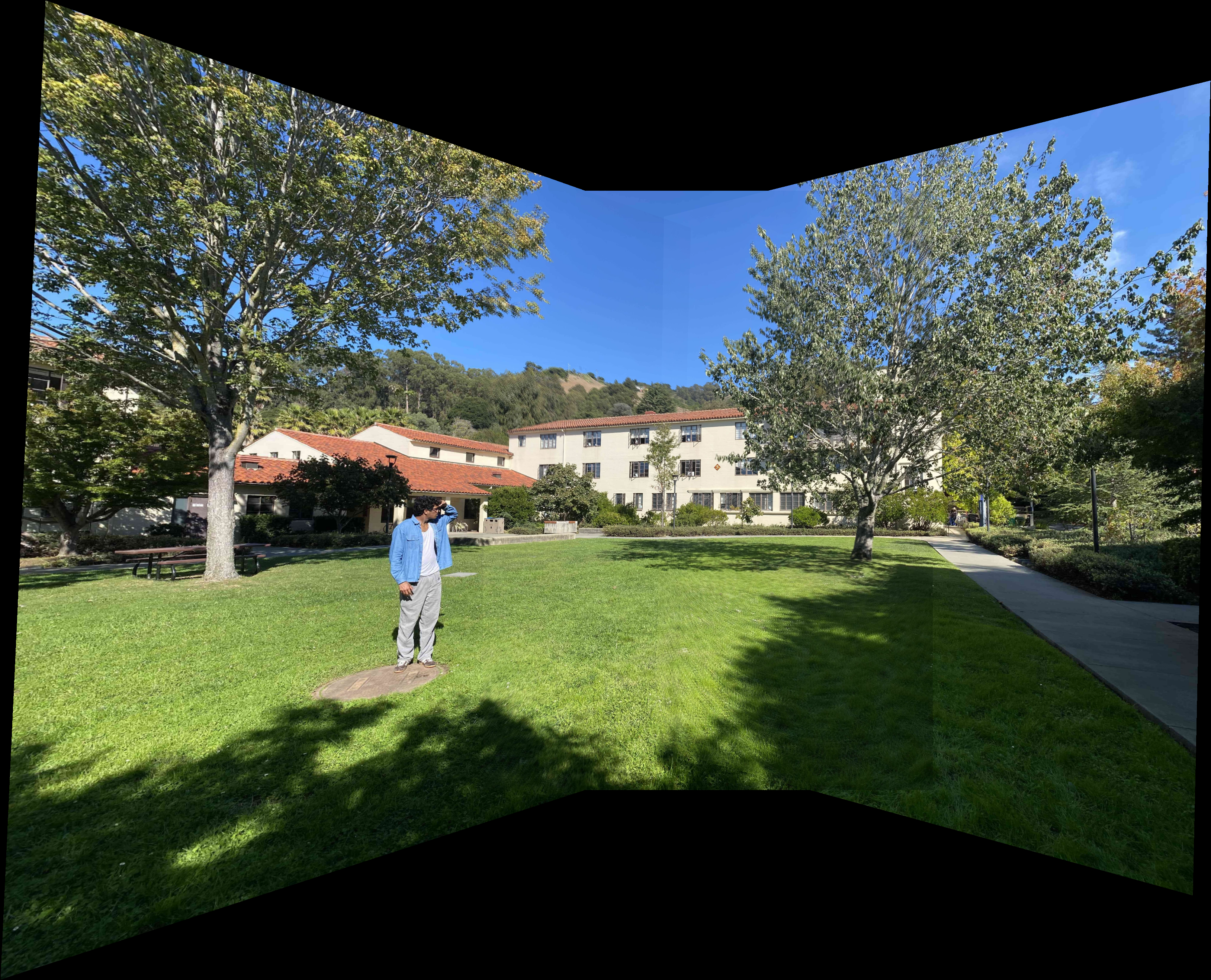 Finally, to create seamless mosaics, I used a weighted averaging technique to blend overlapping regions of the warped images. To do so, I determined the size of the final mosaic by projecting the corners of all images into the chosen reference frame. Each image was then warped into this common projection. For blending, I assigned higher weights to central regions of each image and gradually reduced weights towards the edges, ensuring a smooth transition between overlapping areas.