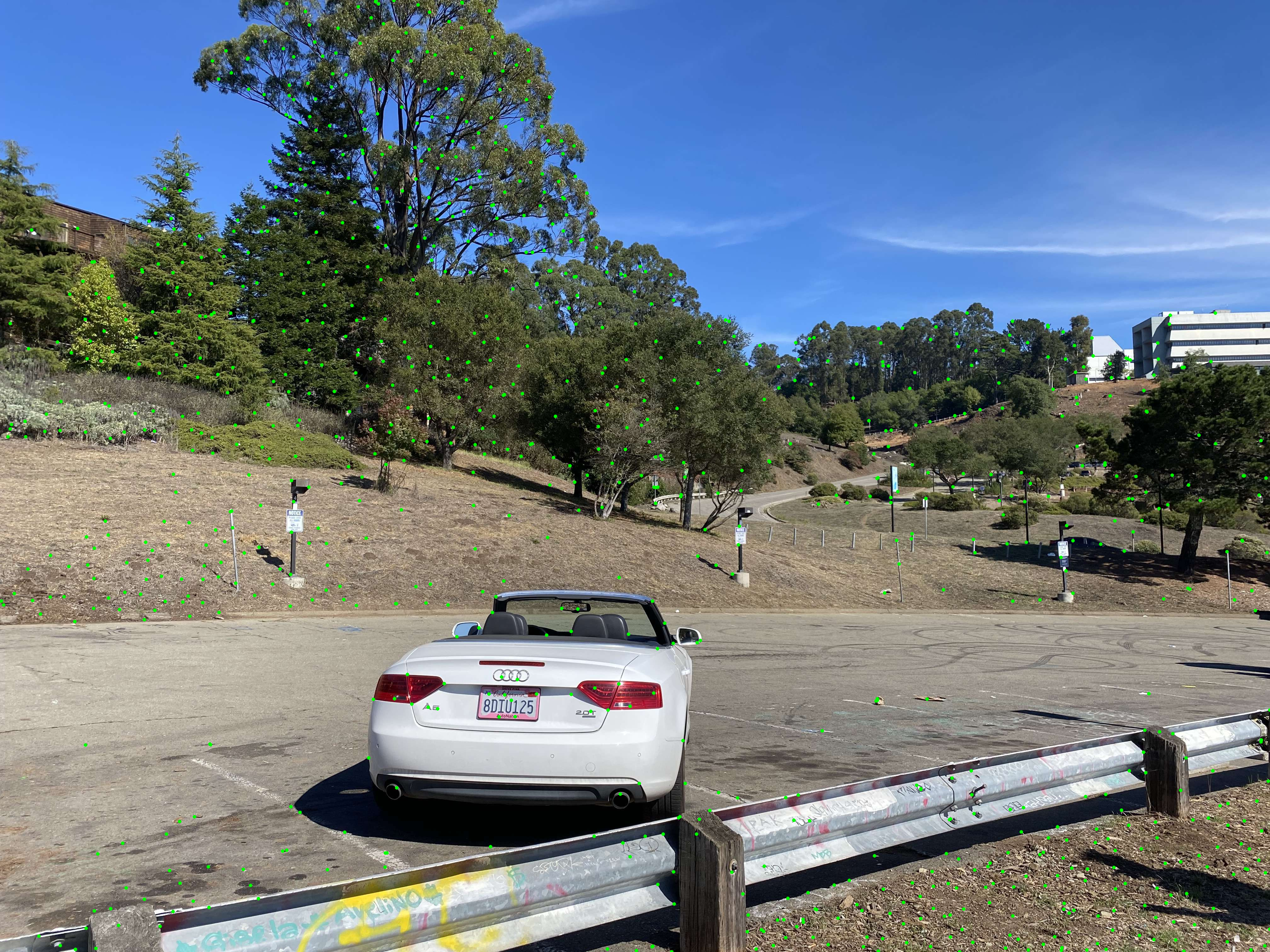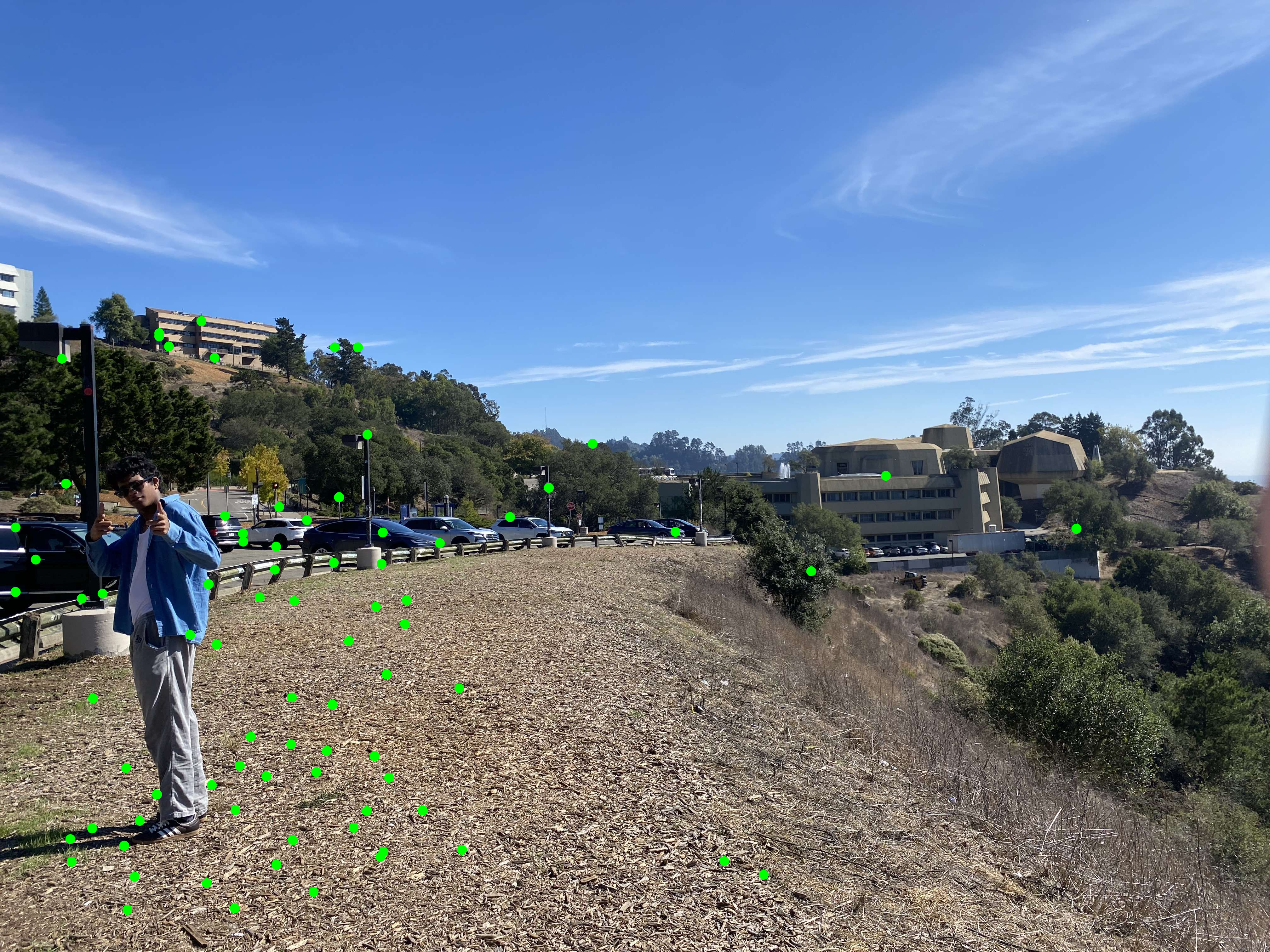 In the second part of this project I implemented an automatic image stitching code using Multi-Scale Oriented Patches (MOPS) features, following the methodology discussed in the paper “Multi-Image Matching using Multi-Scale Oriented Patches” by Brown et al.. This approach auomates the point selection process I manually performed in part A. The updated methodology consists of new steps including Harris corner detection to identify interest points, feature descriptor extraction to compare image patches, feature matching, and RANSAC homography estimation for robust alignment.