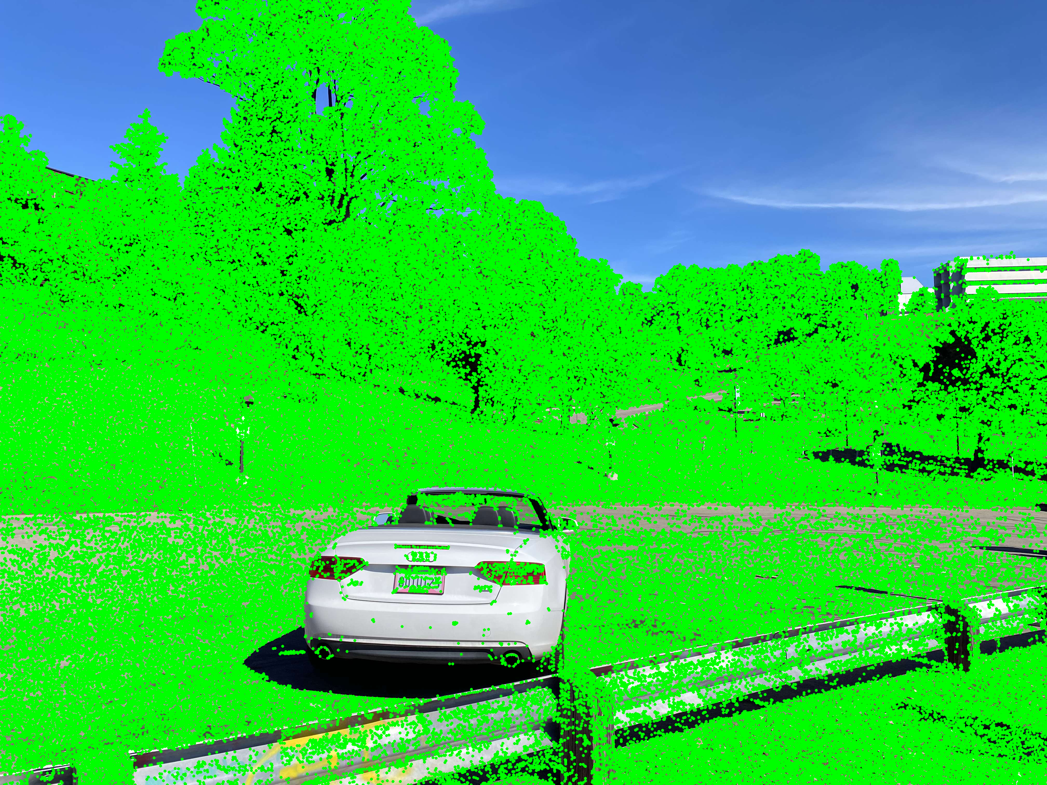The RANSAC procedure works by first randomly sampling four point correspondences. The selection of points is then used to compute the homography using the DLT method from part A. Next, all points are projected from image 1 to image 2 using $H$, evaluating the projection error.